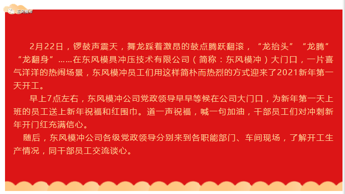 Employees of Dongfeng Die Chong Company welcome a good start, confidently fighting for the Year of the Ox